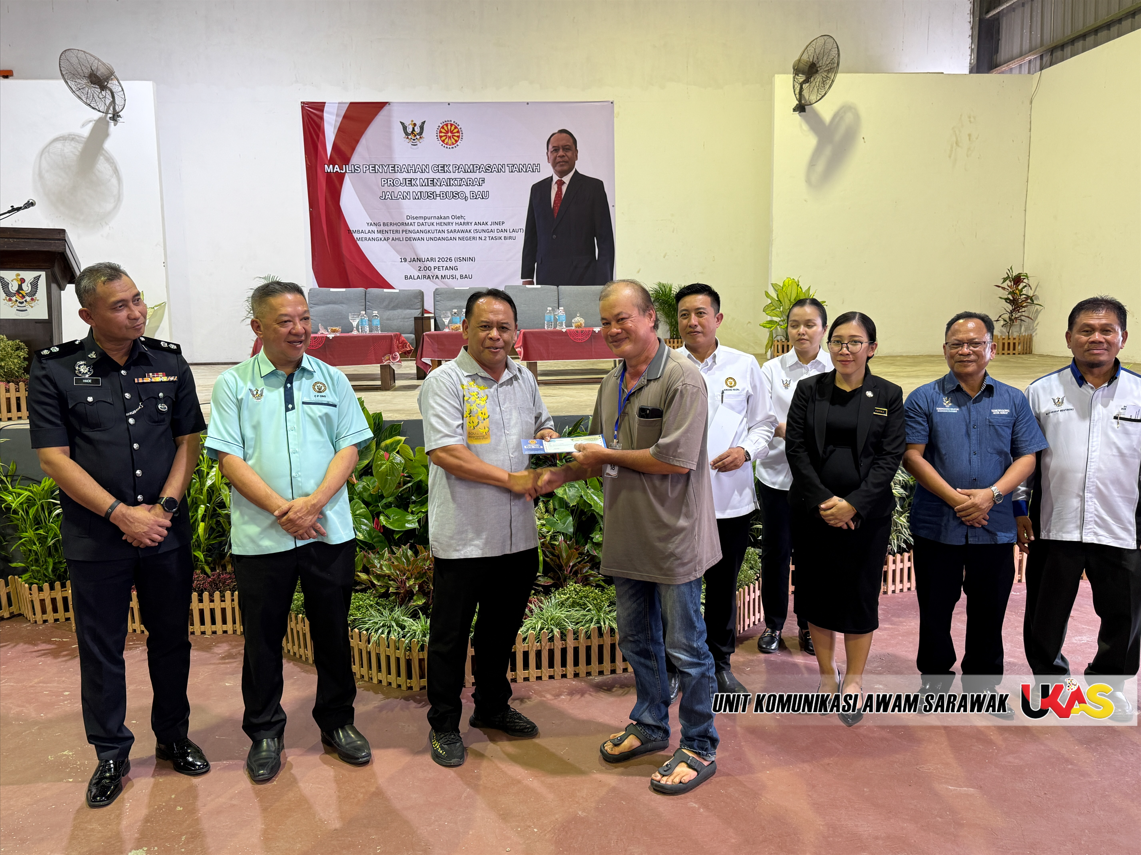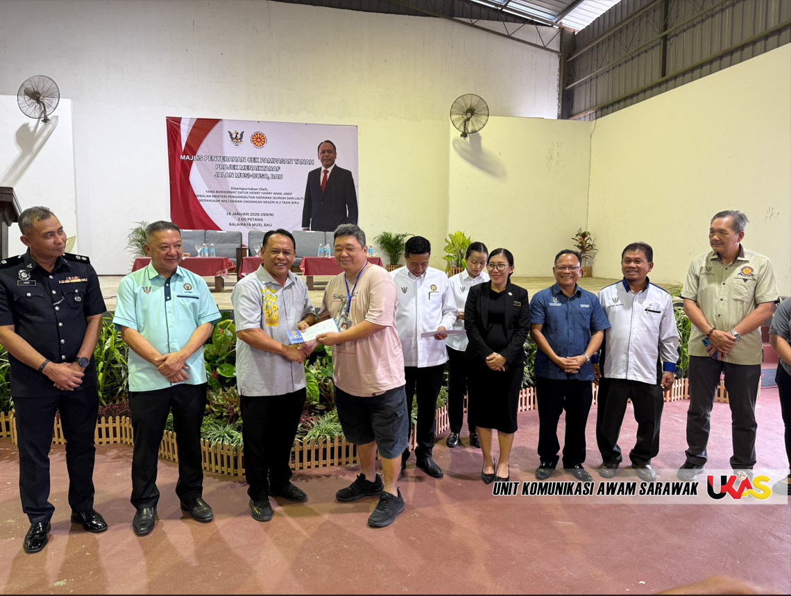 BAU, 20 Januari 2026: Kerajaan Sarawak meneruskan komitmen memastikan kebajikan pemilik tanah terpelihara apabila sebanyak RM4.07 juta pampasan tanah bagi projek menaik taraf Jalan Musi–Buso, Bau.